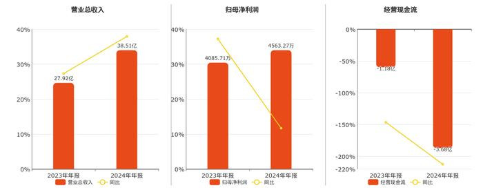 公司营业总收入为38.51亿元。归母净利润为4563.27万元,在已披露的同业公司中排名第22。经营活动现金净流入为-3.68亿元,在已披露的同业公司中排名第26,较去年同报告期经营活动现金净流入减少2.50亿元。